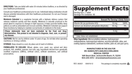 Melatonin Extended is a vegetarian formula with a biphasic delivery system that releases melatonin quickly and then steadily.