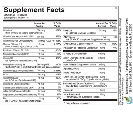 Mito Daily works by combining acetyl L-carnitine, alpha lipoic acid and N-acetyl cysteine to recharge cellular energy production and increase antioxidant protection.