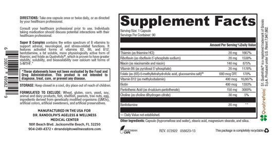 Super B Complex contains the entire spectrum of B vitamins to support adrenal and neurological functions.