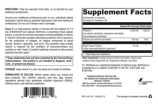 Super C is a high-potency vitamin C formula with the addition of 7.5 mg of BioPerine® per capsule.
