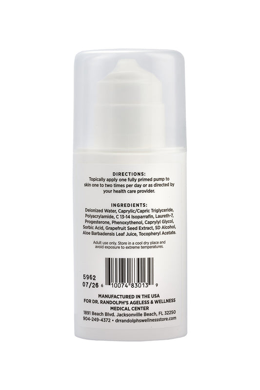 Recommended for women suffering with signs and symptoms of estrogen dominance (high estrogen/low progesterone) such as: heavy/painful periods, tender/fibrocystic breasts, fatigue, mood swings, insomnia, weight gain in waist/hips, irritability, low libido, low thyroid, depression, anxiety etc.